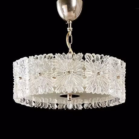 Orrefors Pendant Lamp consisting of 12 glass panels mounted on a chrome frame. Designed by Carl Fagerlund for the Swedish Glassmaker Orrefors. 1960s. The total length can be customized depending of length of chain or lamp rod, only part of the chain is visible on the picture.