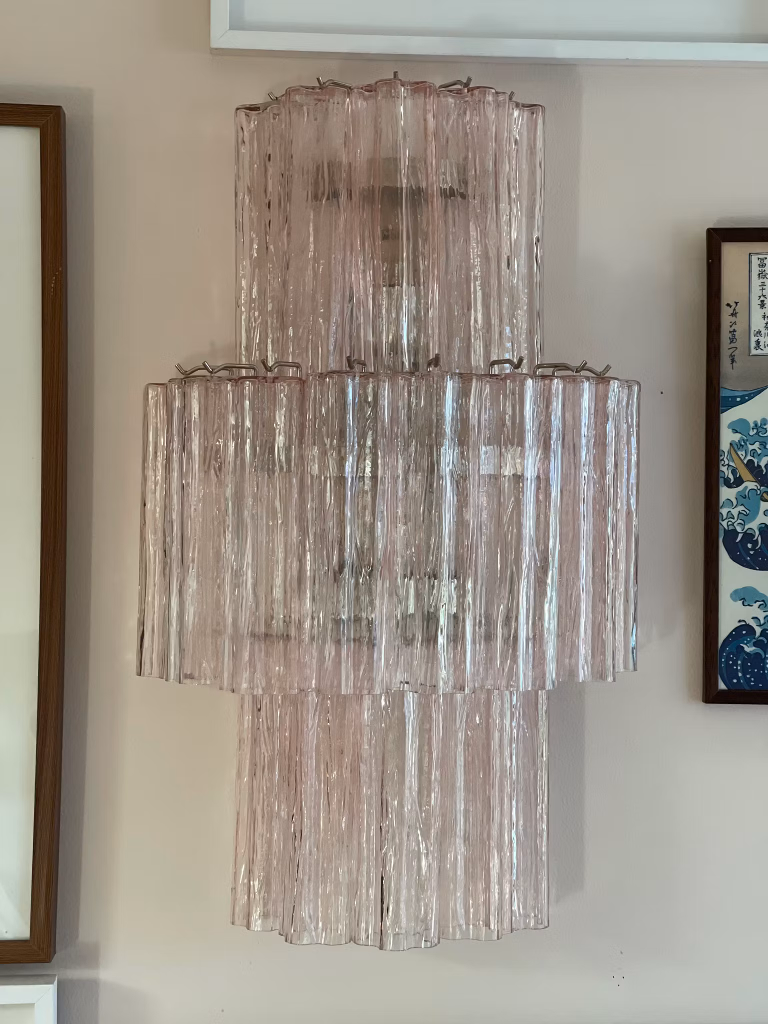 Pink Murano Wall Lamp consisting of eighteen tubular glass prisms with finishes and fittings in chrome. Glass from the Italian Murano District. Traditional Italian Mid-Century Style, produced in Italy during the 21th Century.